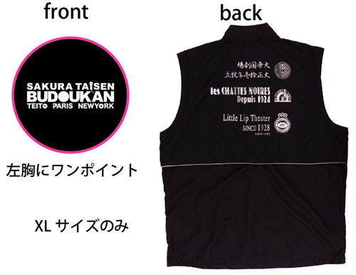 | 以前はスタッフ用でしか作成されなかったベストが武道館ライブグッズで登場です! 胸には武道館ロゴ、背中には帝都・巴里・紐育のマークをデザインしました。季節を問わず重宝するベスト、これは必携アイテムです。サイズはXLサイズのみです。 |