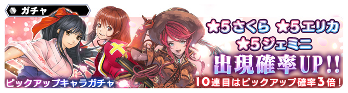 期間限定キャラクターとして、『サクラ大戦シリーズ』より「さくら」「エリカ」「ジェミニ」の出現確率が大幅にUPします!