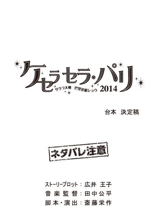 ネタバレご注意! 今回のショウの台本をご用意しました。 家に帰ってから楽しんでくださいね。くれぐれも開演前には開かぬように!! |