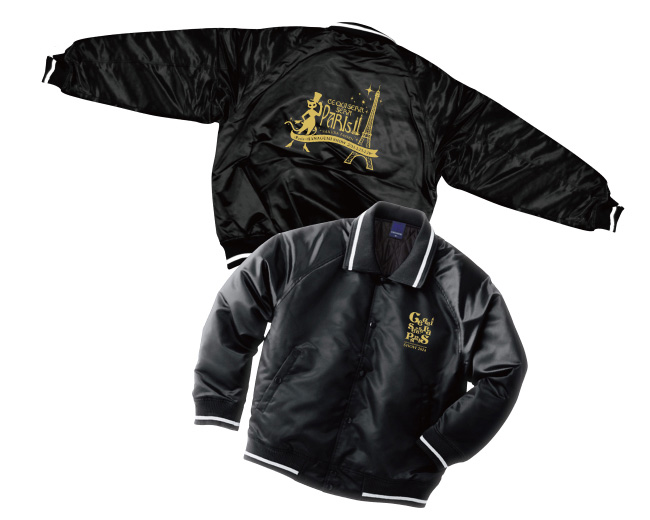 本公演「ケセラセラ・パリ」のロゴがデザインされたスタジャンです。 これがあれば寒い日でも安心! |